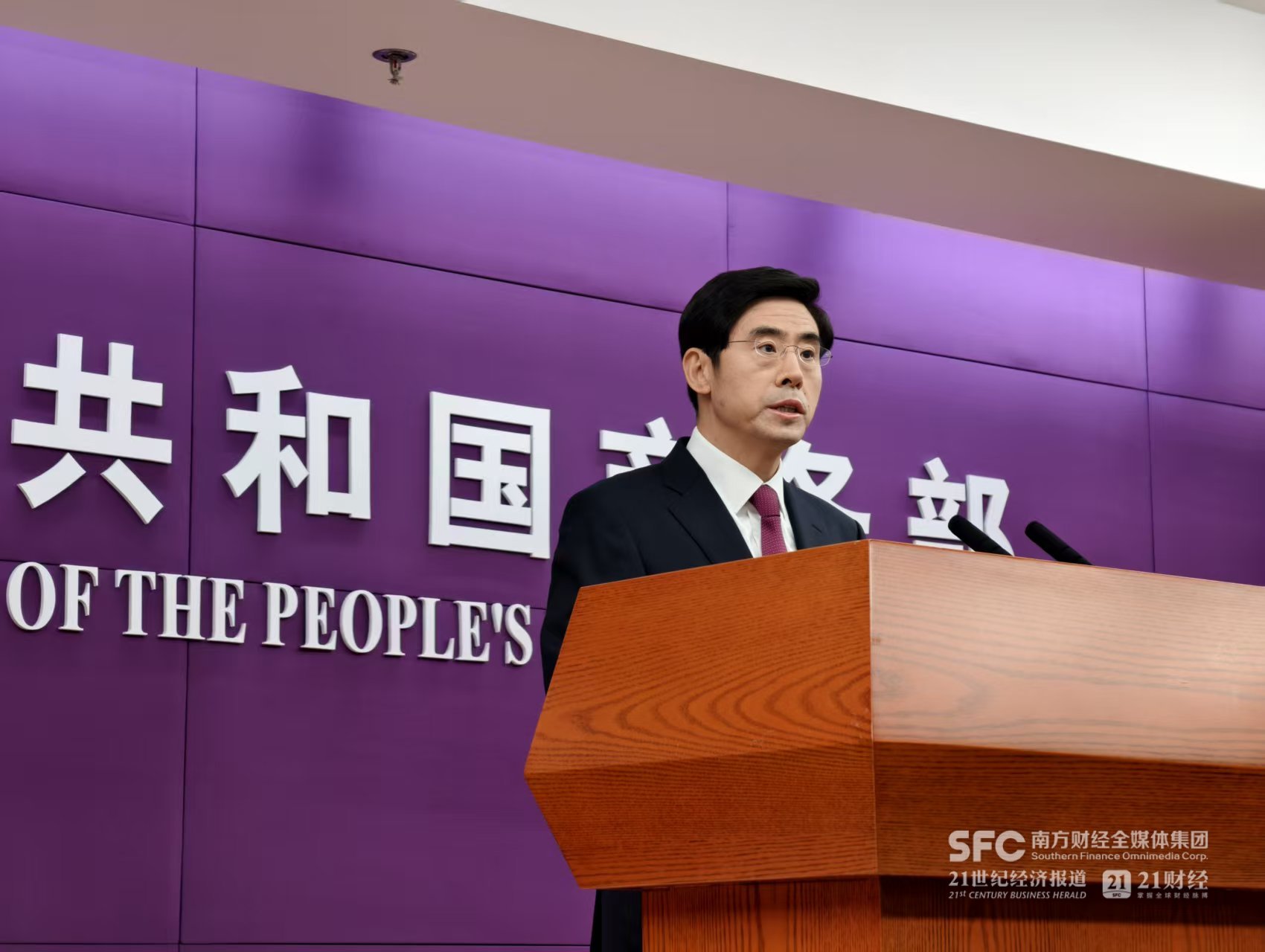 商务部新闻发言东谈主何亚东。拍摄:张旭
