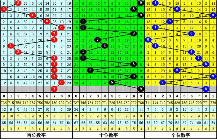 百位分析:该位上期开出号码8,最近10期该位012路比为0:7:3,其中2路号码终止4期再次出现,本期不错废弃2路号码,正经1路号码开出,参考7。