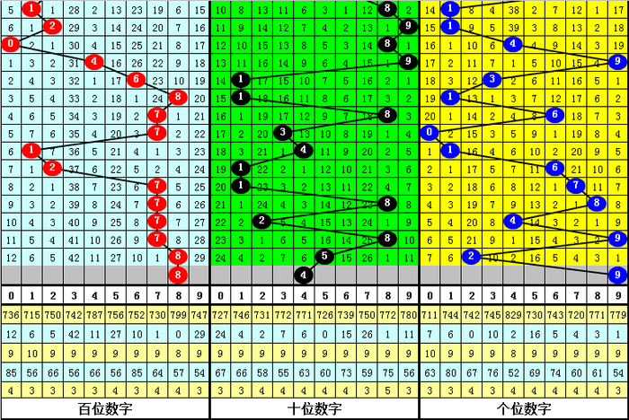 两码合开出频次分袂为:1、2、4、7出现9个,5出现6个,0、3、6、9出现5个,8出现4个,其中历史同时两码合奇偶比开出34:32,012路比开出20:27:19,大小比开出29:37;